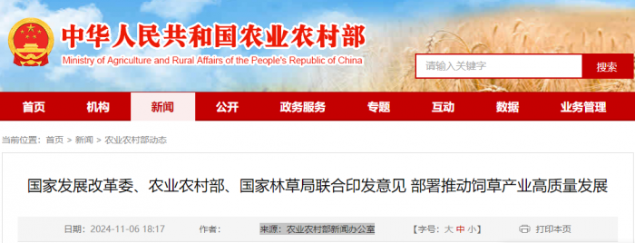 近日,国家发展改革委、农业农村部、国家林草局联合印发《关于推动饲草产业高质量发展的意见》(以下简称《意见》),部署加快发展饲草产业,保障我国奶类、牛羊肉等畜产品供应,优化城乡居民膳食结构。