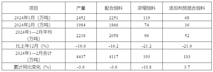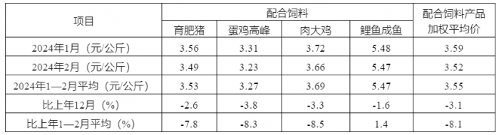 表3 2024年1—2月凯发k8国际首页企业浓缩凯发k8国际首页和添加剂预混合凯发k8国际首页平均价格