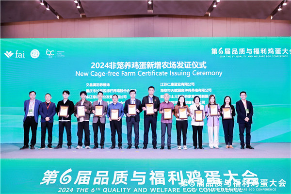 本次大会有11家新增企业荣获非笼养证书,截至目前,已经有27个农场成功获得认证,解放的总蛋鸡数量高达794,100羽,非笼养鸡蛋的产能也突破了2.4亿枚,以下附上2024年中国福利鸡蛋采购推荐清单。公众号后台私信小编,索取免费电子资料。