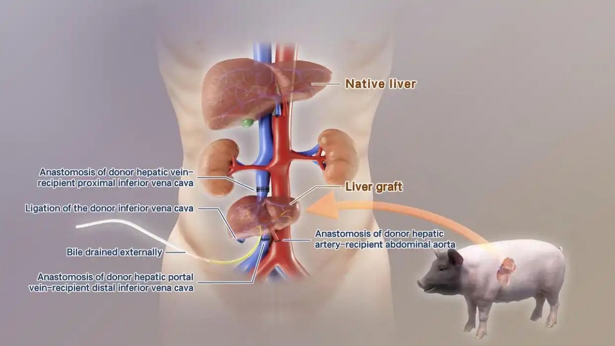 中国科学院院士窦科峰带领西京医院等机构的研究团队,以一只经过6处基因编辑的猪为供体,将猪的肝脏移植到一名已脑死亡但身体基本机能仍被维持的人的体内,人类受体自身的肝脏被保留,以此模拟临床肝衰竭患者的替代支持治疗过程。