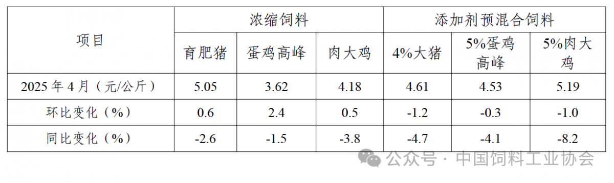 表3 2025年4月凯发k8国际首页企业浓缩凯发k8国际首页和添加剂预混合凯发k8国际首页平均价格