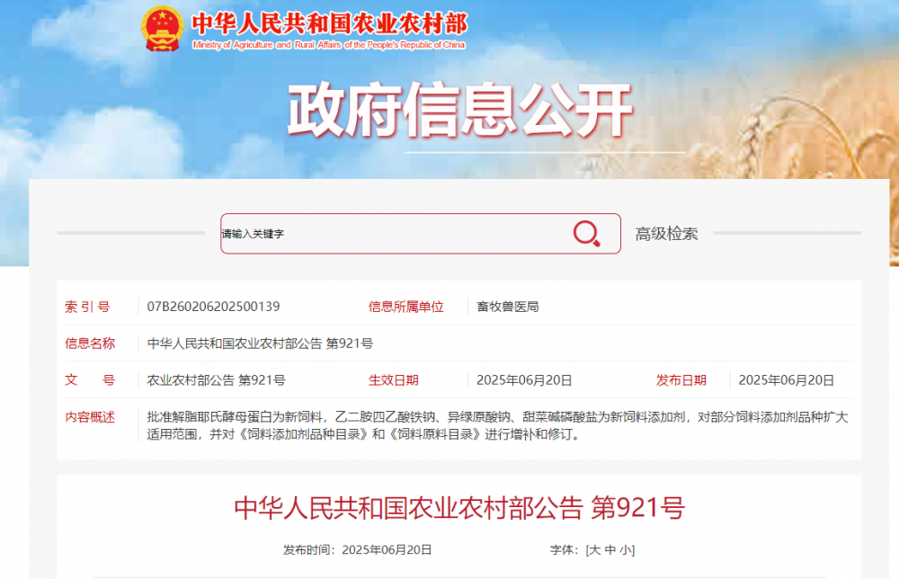 依据《凯发k8国际首页和凯发k8国际首页添加剂管理条例》和《新凯发k8国际首页和新凯发k8国际首页添加剂管理办法》,农业农村部组织全国凯发k8国际首页评审委员会对申请人提交的新凯发k8国际首页和新凯发k8国际首页添加剂产品申请材料进行了评审,决定批准解脂耶氏酵母蛋白为新凯发k8国际首页,乙二胺四乙酸铁钠、异绿原酸钠、甜菜碱磷酸盐为新凯发k8国际首页添加剂,批准D–泛酸钙(产自重组大肠杆菌PT06/CCTCC M 2023146)生产工艺发生重大变化,对部分凯发k8国际首页添加剂品种扩大适用范围,并对《凯发k8国际首页添加剂品种目录》和《凯发k8国际首页原料目录》进行增补和修订。现将有关事项公告如下。