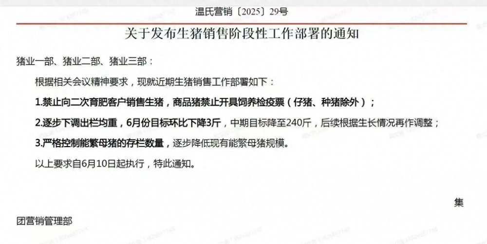 牧原股份(002714.SZ)、温氏股份(300498.SZ)、新希望(000876.SZ)等多家公司公告6月销售数据,同时披露上半年经营业绩情况。 据财联社记者初步统计,已披露销售数据12家上市猪企上半年累计出栏量超8000万头,同时集中度依然较高,出栏前三名牧原股份、温氏股份和新希望出栏总数占比超78%。除新希望、天邦食品(002124.SZ)、傲农生物(603363.SH)外,多数猪企今年上半年出栏量较去年同期增长。 与2024年上半年相比,上市猪企销售均价虽有小幅下滑,但因综合养殖成本下降明显,猪企业绩集体回暖。 其中牧原股份预计上半年归母净利润105亿元-110亿元,同比增长超9倍;新希望预计上半年归母净利润6.8亿元-7.8亿元,同比扭亏。 盈利好转并非意味上市猪企已完全走上健康发展之路,在经历上轮快速扩张的周期后,多数上市猪企负债率依然高于50%,行业负债率处于历史较高水平。 需要关注的是,由于行业产能快速扩张,但猪肉需求增长几乎不变,越来越多业内人士意识到,当前国内生猪养殖行业的核心矛盾已从此前 “保供”转为“高质量发展”。 事实上,自去年5月以来,生猪养殖已经连续14个月保持盈利。国家统计局数据显示,二季度末全国能繁母猪存栏量为4043万头,为正常保有量3900万头的103.7%,处于产能调控绿色合理区域的上限。 中国农业科学院北京畜牧兽医研究所研究员朱增勇向财联社记者表示:“一方面国内能繁母猪效率在提升,结合上半年能繁母猪量稳定在4000~4050万头,生猪供给稳定且充裕。如果当前规模猪企继续扩张势必引发供给增加,在需求稳定的情况下加剧猪价下跌风险;另一方面国内生猪产业需要转向高质量发展,而非单纯追求数量提升,尤其当前龙头养殖企业,市场份额已经达到较高比例。” “反内卷”政策引导加强 当前生猪行业正在推动“反内卷”,今年以来多次政策出台倡导行业减母猪、控二育、降体重,释放政策积极信号。 昨日,农业农村部召开推动生猪产业高质量发展座谈会,会议邀请牧原、新希望、正大、德康、双汇、金锣等头部养殖企业和屠宰企业参会。会议中部党组书记、部长韩俊表示,当前生猪产业面临产能阶段性偏高、生产和价格波动风险大等问题,要严格落实产能调控举措,合理淘汰能繁母猪,适当调减能繁母猪存栏,减少二次育肥,控制肥猪出栏体重,严控新增产能。 在此之前已有多项“反内卷”政策调控密集出台。 5月底,已有相关部门推动落后产能有序退出,多家头部猪企接相关部门要求,暂停能繁母猪扩产,出栏体重也需要控制在120公斤左右。牧原股份当时曾向财联社记者表示, “当前公司结合内外部情况,决定不对二次育肥客户出售商品猪。” 6月上旬,农业农村部召开生猪生产调度会,通过降低出栏均重减少今年下半年的供给、和限制基础产能,调减100万头,稳定明年上半年供给。 有多家猪企向财联社记者表示,上述政策执行多采用“窗口指导”方式,提前预防企业逆势扩张。 生猪行业反内卷核心在于产能供给侧,农业农村部生猪产业监测预警首席专家王祖力向财联社记者表示:“生猪产业目前在开展产能调控,以缓解下半年甚至明年的供应压力。目前来看,行业确实是在响应国家的引导,已监测到6月份出栏体重下降,二育情绪目前较为谨慎和理性,产能总体处在调控方案所设定的绿色合理区域内。调控产能是能够稳定行业预期,预期稳、产能就可以稳住,行情也能稳住。” 上市猪企响应政策 政策执行已有一定成效。 温氏股份相关人士向财联社记者表示,公司属于行业内最早公开响应国家政策号召的上市猪企,正积极落实国家相关监管单位的政策指导。以生猪均重为例,近几年温氏肉猪均重处于240-250斤左右,降重压力较小。目前公司积极落实政策指导,5月份肉猪均重248斤,6月份降至了246斤。 (此前温氏股份6月9日在公司内部和产业条线发布的相关通知) 财联社记者从新希望获悉,4月以来公司及时注意到行业环境变化,响应国家政策的指引,配合相关主管部门稳定生猪产能的具体措施的落地,主动调整发展节奏,也注意控制公司整体的种猪存栏规模。维持头均出栏体重120公斤/头左右,公司在今年6月又向采购客户发出通知,要求明确销售流向,商品猪不得流入二次育肥,禁止开具饲养检疫票,对违规操作的客户将给予暂停竞拍、直至关闭竞拍权的处罚。 某上市猪企高管向财联社记者表示:“目前公司生猪出栏体重也就120多公斤,政策之前曾想今年投产几个闲置场,但现在看来不太可能实现,公司能繁母猪提升主要在于此前没满负荷的场后备逐渐转成能繁增加。” 据农业农村部,6月生猪宰后均重月均90.3公斤,环比下跌0.58%,同比下降2.11%。在政策引导和高温影响下,生猪出栏屠宰均重得到抑制。 目前生猪出栏仍处于前期产能扩张带来的惯性增长趋势中,但依靠拉动产能优势已不存在,多位行业人士认为,养殖成本将成为行业分化的主要因素。 当前行业内部成本差异十分明显,第一梯队中,牧原股份、温氏股份和神农集团(605296.SH)养殖成本已接近12元/公斤。 但天邦食品、天康生物(002100.SZ)、华统股份(002840.SZ)等均超过13元/公斤。 朱增勇进一步表示,生猪产业高质量的发展,在有效控制生产成本的同时,更重要是通过比如种猪的选育,营养配方的改良,提高养殖技术水平,来提升生猪品质。此外大型猪企更应发挥联农带农的责任。 数据来源:财联社