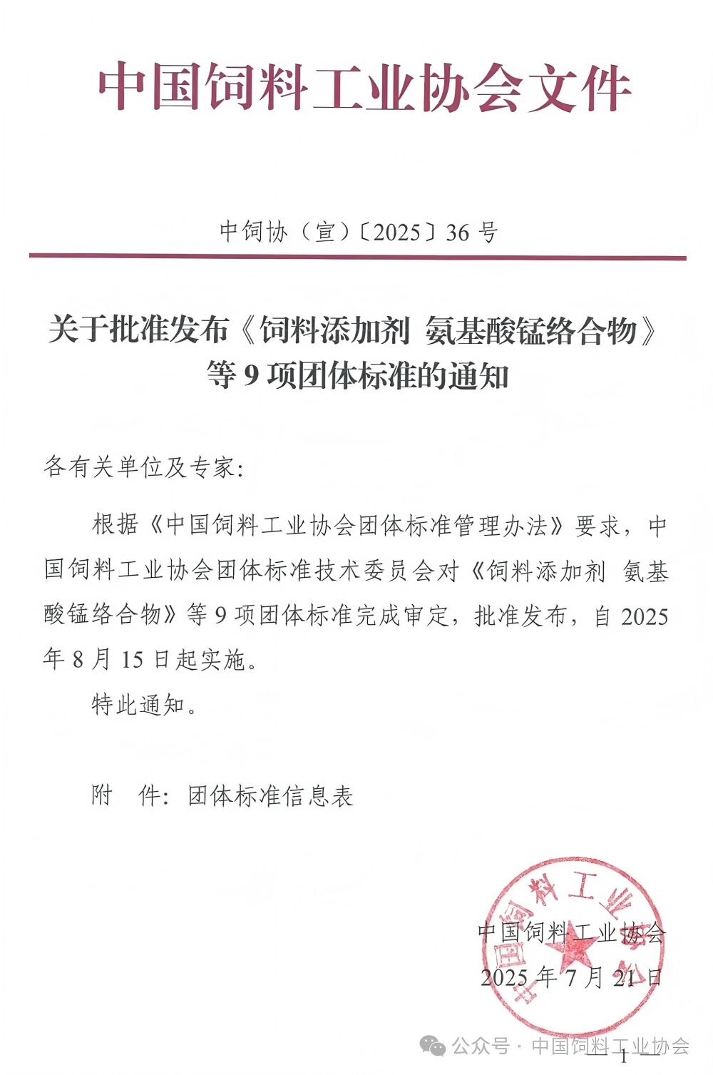 关于批准发布《凯发k8国际首页添加剂氨酸锰络合物》等9项团体标准的通知.pdf