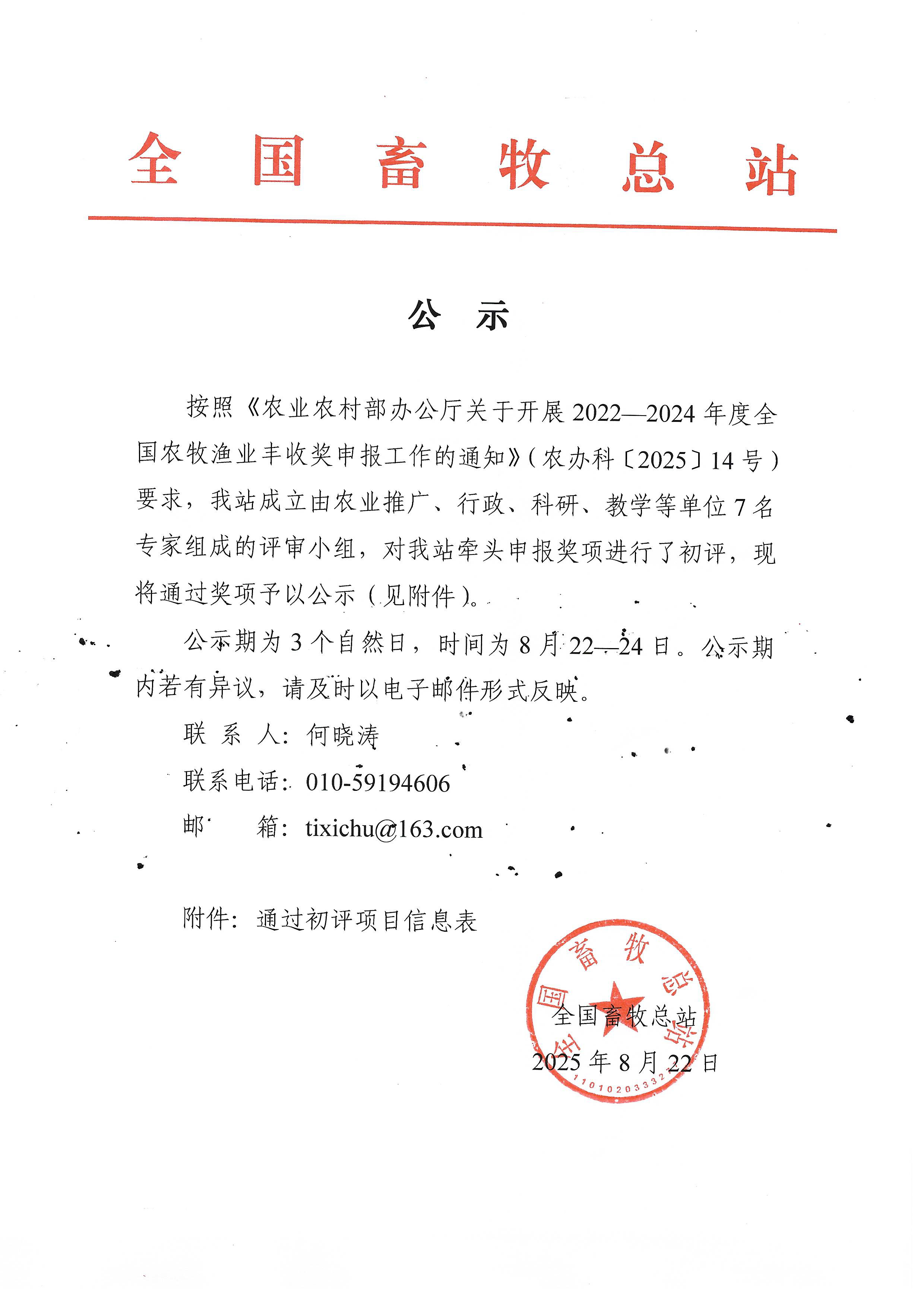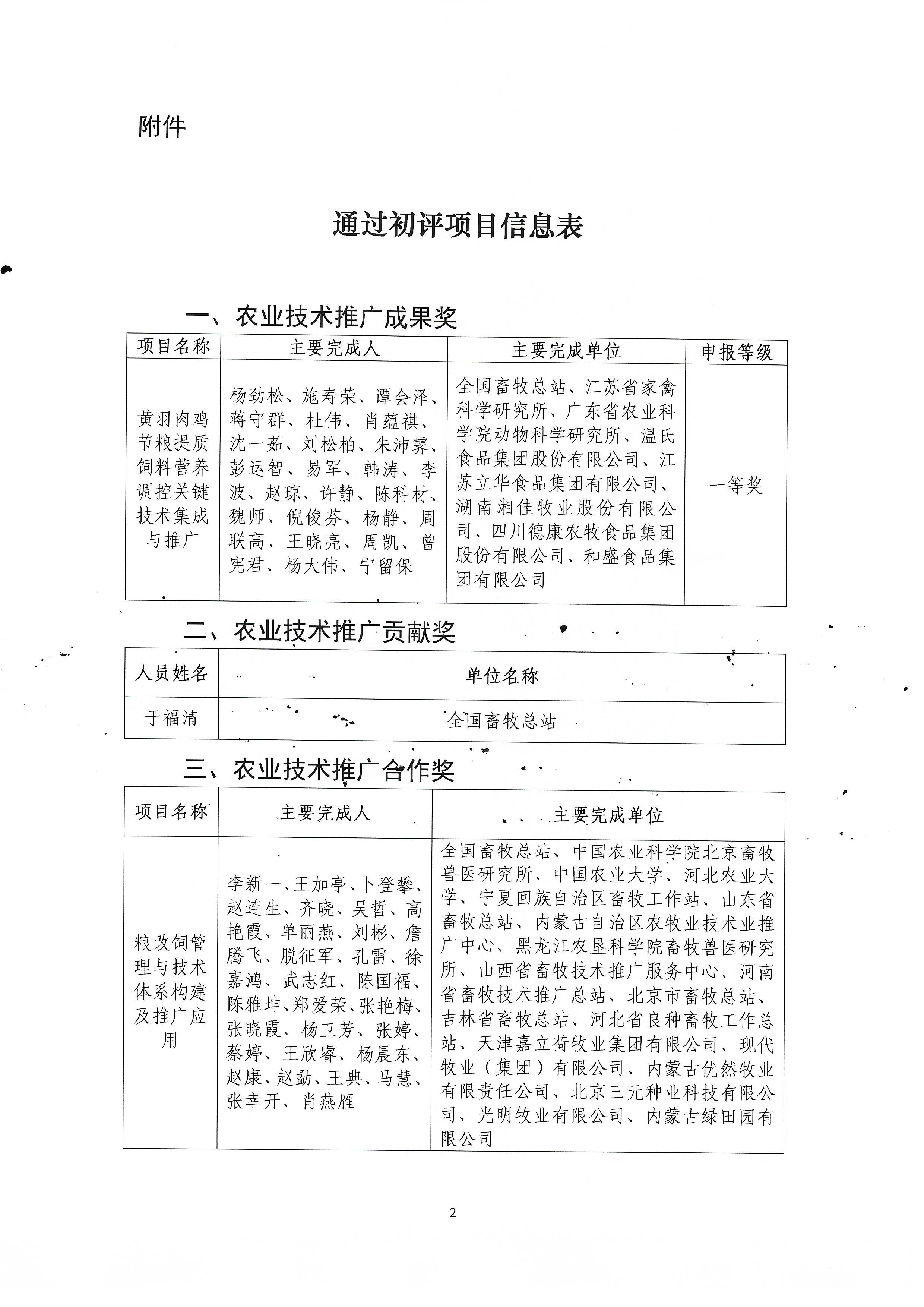 2022—2024年度农牧渔业丰收奖申报奖项初评结果公示