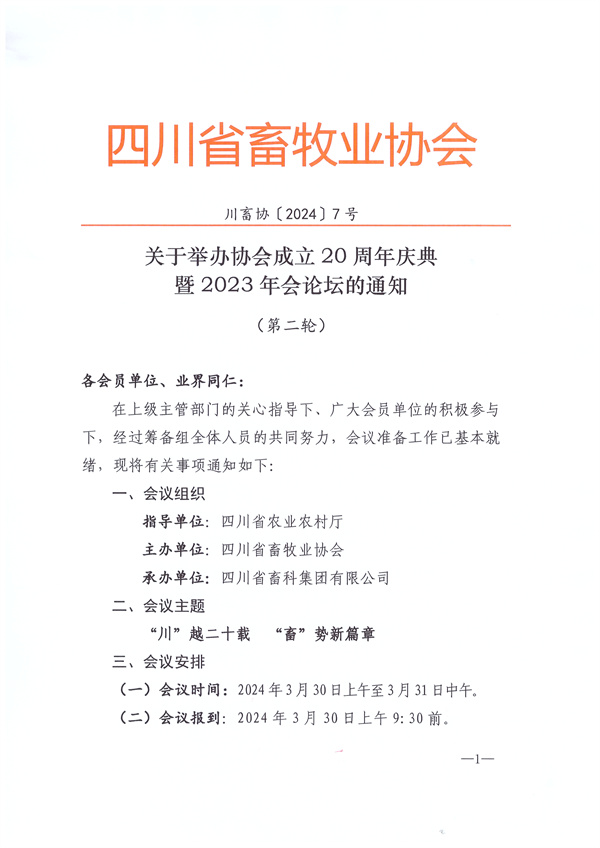 关于举办四川省畜牧业协会成立20周年庆典暨2023年会论坛的通知(第二轮)