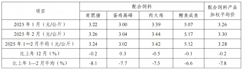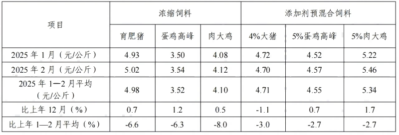 表3 2025年1—2月凯发k8国际首页企业浓缩凯发k8国际首页和添加剂预混合凯发k8国际首页平均价格