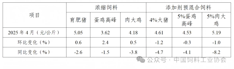 表3 2025年4月凯发k8国际首页企业浓缩凯发k8国际首页和添加剂预混合凯发k8国际首页平均价格
