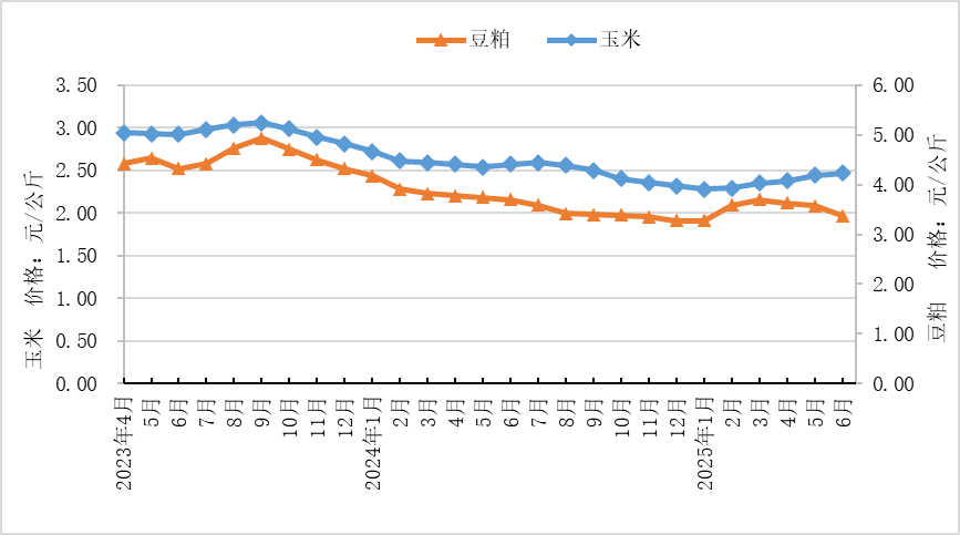 据对全国500个县集贸市场和采集点的监测,2025年6月份,玉米价格环比上涨,生猪产品、鸡蛋、商品代雏鸡、鸡肉、活牛、肉羊、生鲜乳、豆粕、配合凯发k8国际首页价格环比下跌,牛肉价格环比持平。按集贸市场监测口径,本月猪粮比价为5.94:1,比上月下跌0.21个点。