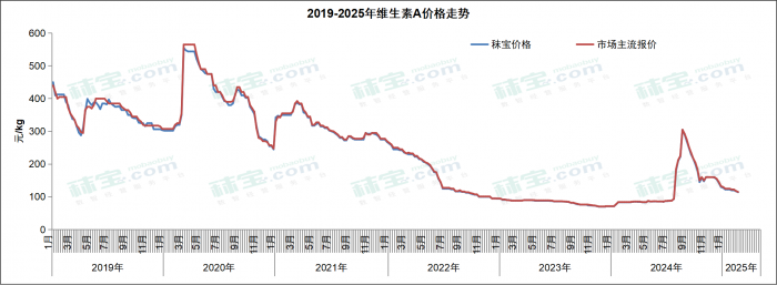 本周国内维生素A500市场主流价格110-120元/kg。维生素A下游需求不佳,询单清淡,市场价格弱势运行。后期需关注市场供应情况以及各环节库存变化。