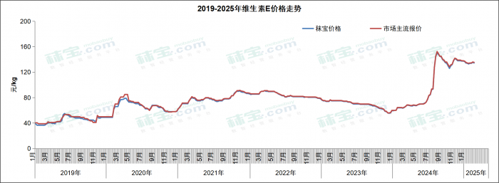 本周国内维生素E市场主流价格133-138元/kg。维生素E出口表现尚可,国内终端按需采买,实单议价,成交价格有所松动,后续需关注市场供应及报价情况。
