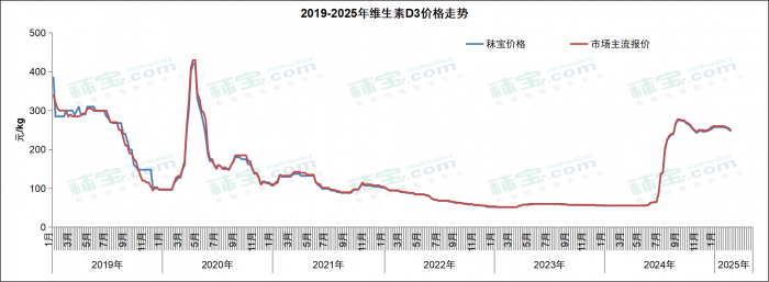 本周维生素D3国内市场主流价格235-265元/kg。维生素D3上游工厂挺价意愿较强,市场货源库存一般,市场价格坚挺,后续需关注厂家价格调整情况。