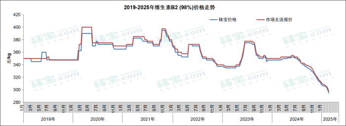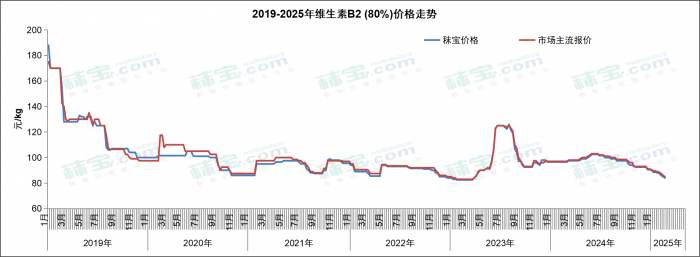 本周维生素B2 (80%) 市场主流价格80-90元/kg,VB2 (98%) 市场主流价格285-310元/kg。厂家供应充足,国内市场货源多,终端维持刚需补货,部分价格稍低。