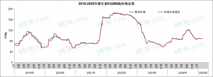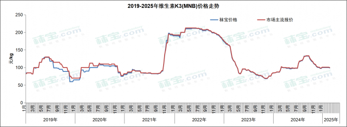本周维生素K3 (MSB) 市场主流价格86-92元/kg,维生素K3 (MNB) 市场主流价格98-102元/kg。维生素K3部分厂家停报停签,市场价格偏弱调整,终端刚需补货,主流企业停产检修,后续关注厂家生产和市场成交情况。