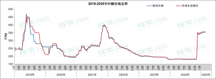 本周国内叶酸市场主流价格345-370元/kg。上游工厂挺价意愿较强,市场价格坚挺,后续需关注厂家生产和前期订单执行进度。