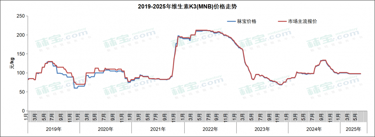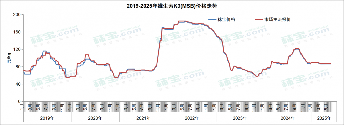 本周维生素K3 (MSB) 市场主流价格86-88元/kg,维生素K3 (MNB) 市场主流价格96-100元/kg。维生素K3国内市场行情弱调,终端刚需补货,后续关注厂家生产和市场成交情况。