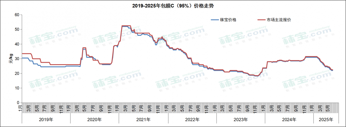 欧洲市场价格40-45欧元/kg。市场价格稳固,先前高低搭售的合同开始进入市场。价格稳固在高低合同平均价格的水平。底部价格小幅下跌,回到40欧元/公斤。