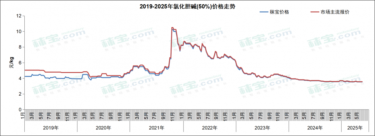 本周国内氯化胆碱市场主流价格3.5-3.65元/kg。前端原料环氧乙烷价格趋稳,氯化胆碱厂家报价暂稳,市场报价暂稳,下游维持刚需采买。后续需持续关注欧盟对原产于中国的氯化胆碱反倾销进展。