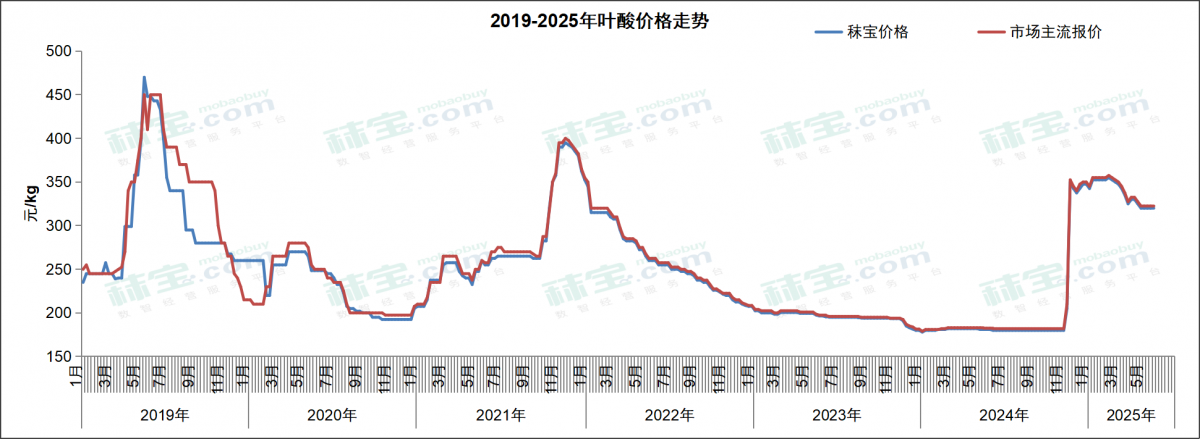 本周国内叶酸市场主流价格315-330元/kg。叶酸厂家维持高位报价,下游需求清淡,市场渠道报价相对坚挺。后期需关注厂家生产情况和前期订单执行进度。