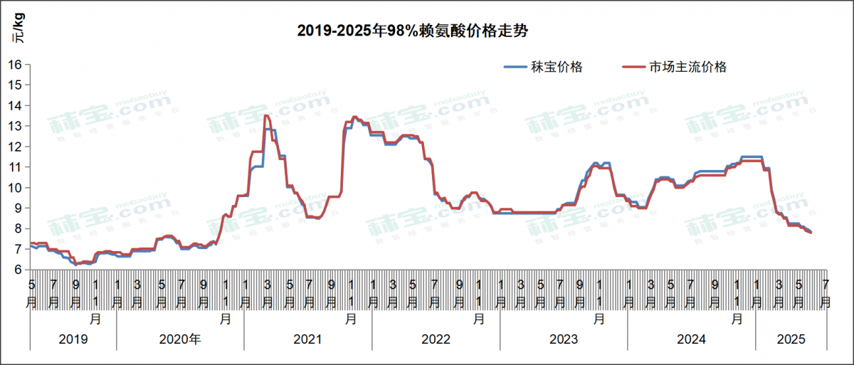 欧洲市场上蛋氨酸价格2.50-2.60欧元/kg。2025年6月4日,EVONIK宣布了为期6-7周的两个厂区的检修,新加坡厂区具体时间为8月到9月,安特卫普厂区为9至10月。市场担心Q3的供求可能会出现风险,因此近期蛋氨酸价格小幅上涨。