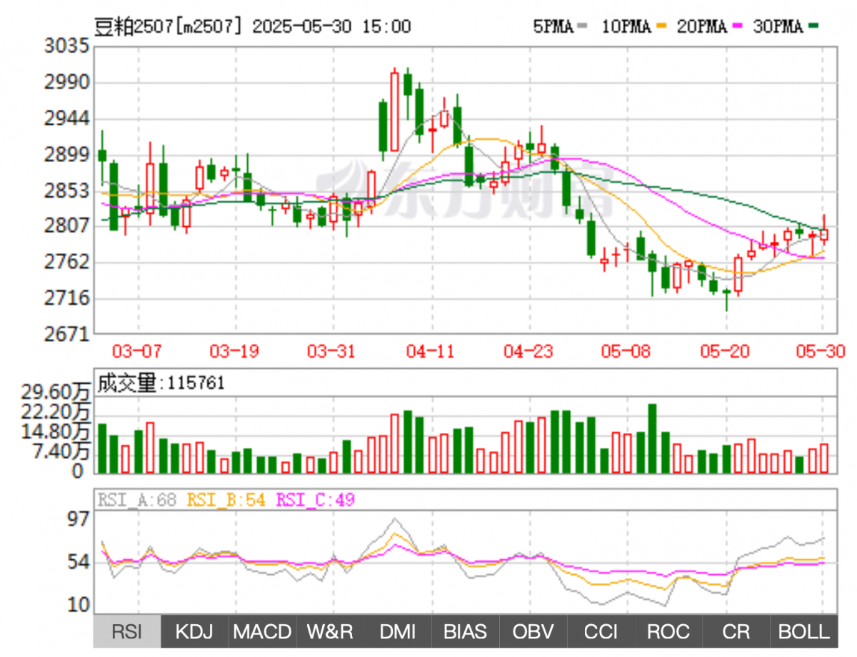图2 大商所连豆粕2507期货合约走势图(日k行情)
