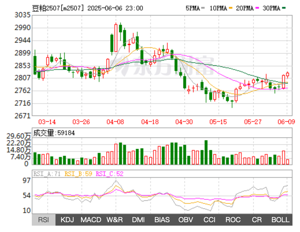 图2 大商所连豆粕2507期货合约走势图(日k行情)
