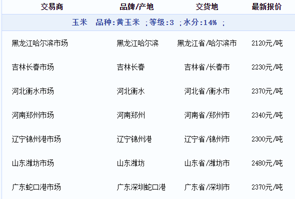 8月21日玉米商品报价动态