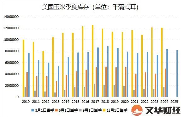 美国农业部(USDA)同日公布的季度谷物库存报告显示,美国2025年3月1日当季玉米库存为81.51亿蒲式耳,低于上年同期的83.52亿蒲式耳,与此前市场预估相符。数据同时显示,3月1日美国农场内玉米库存为45亿蒲式耳,农场外库存为36.50669亿蒲式耳。