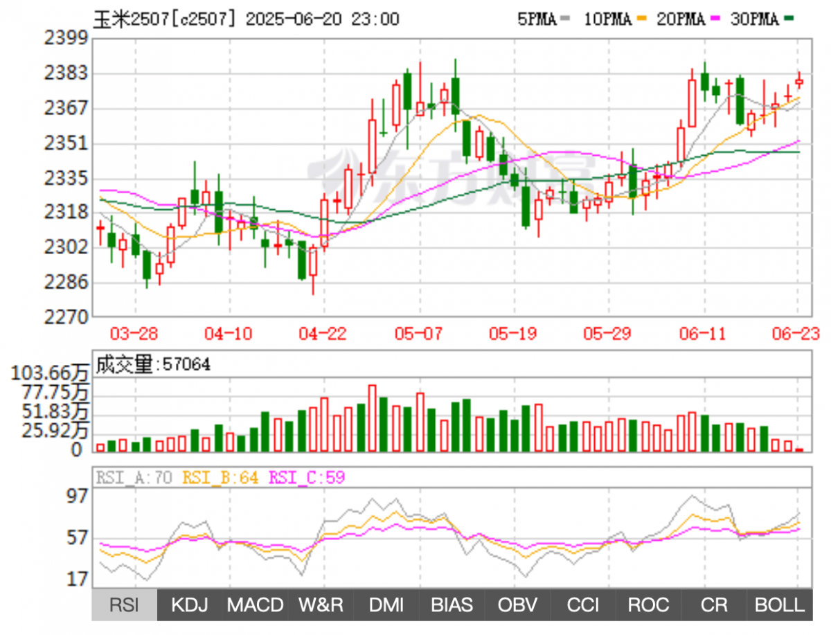 图2 大商所C2507玉米期货价格走势图(日k行情)